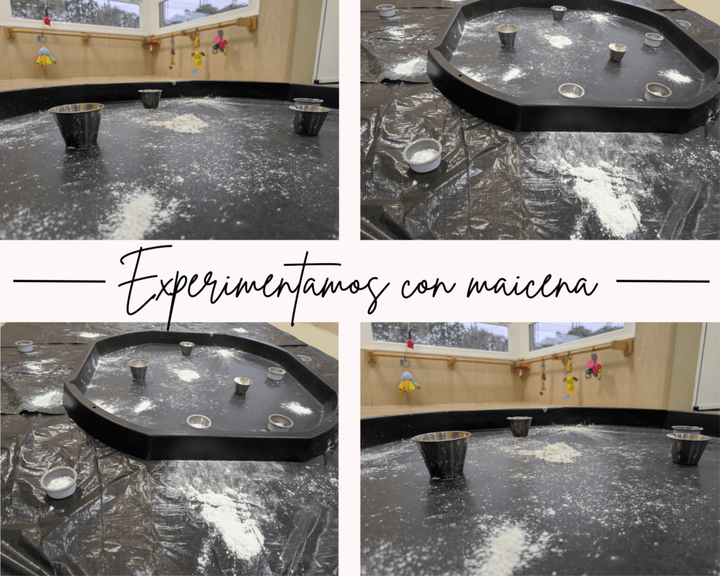 Los pequeños de la Escuela disfrutaron de una pequeña provocación sensorial experimentando con maicena.